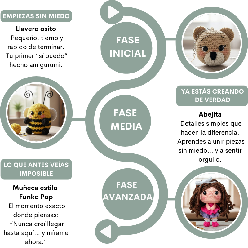 Es un recorrido pensado para que tus manos ganen confianza proyecto a proyecto, sin saltos, sin presión y sin frustración.
